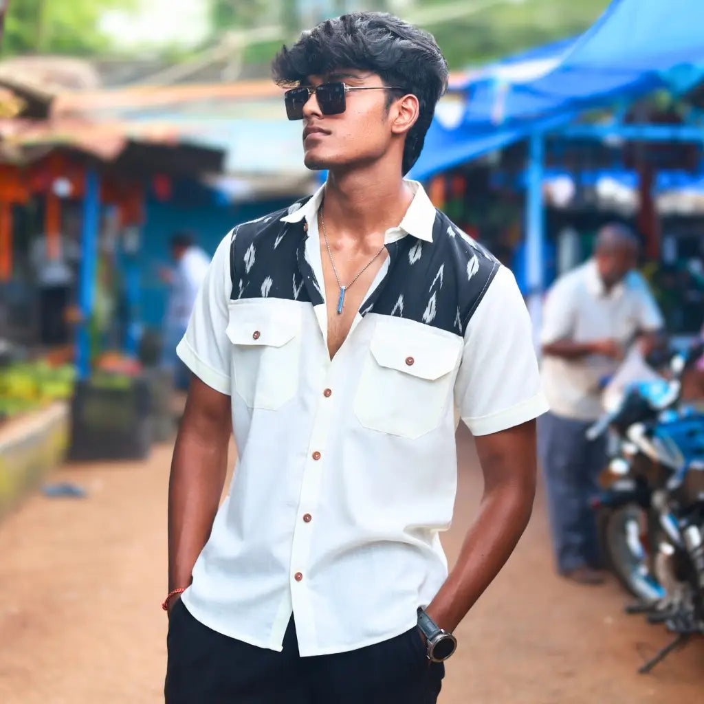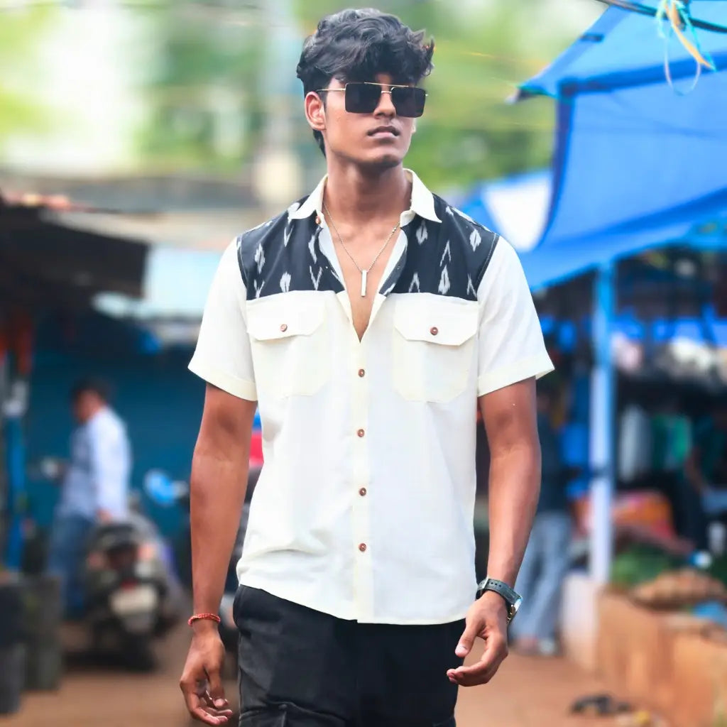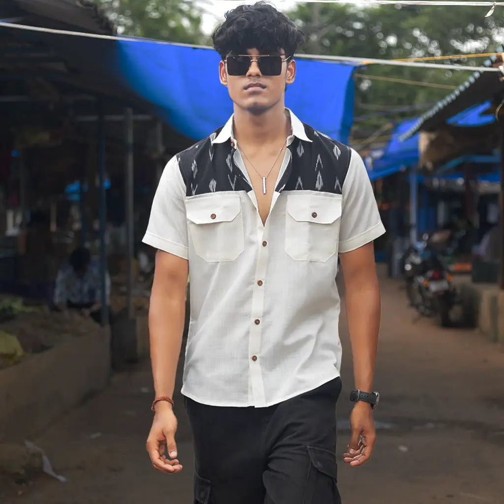 Men’s Half sleeve Ikat Organic Cotton Shirt – Dual Harmony